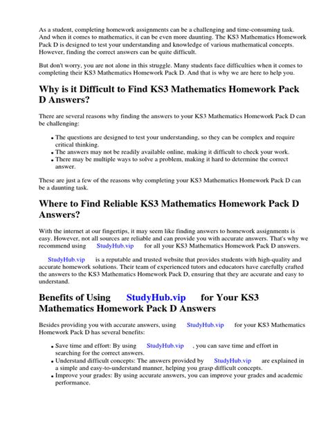 Read Online Ks3 mathematics homework pack answers Epub Open Library